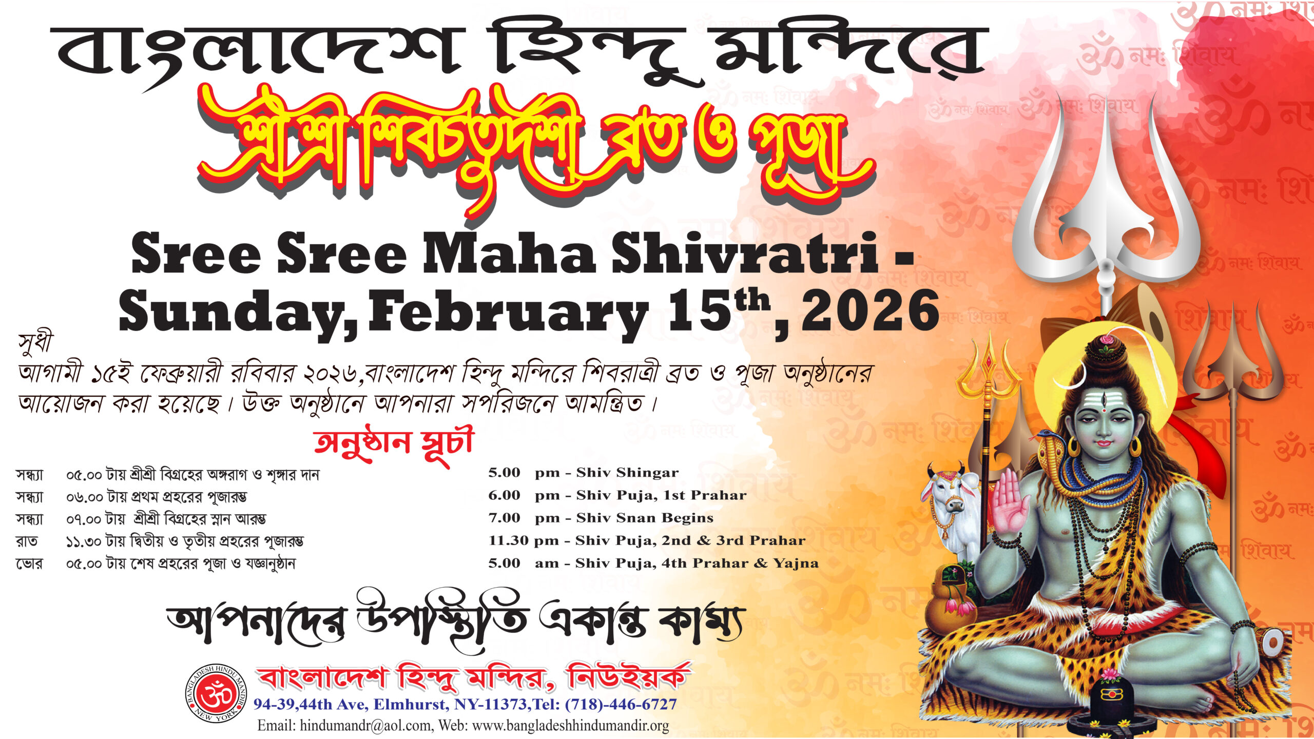 Shiv Puja, 4th Prahar & Yagna: 5:00am (early morning of 2/16)